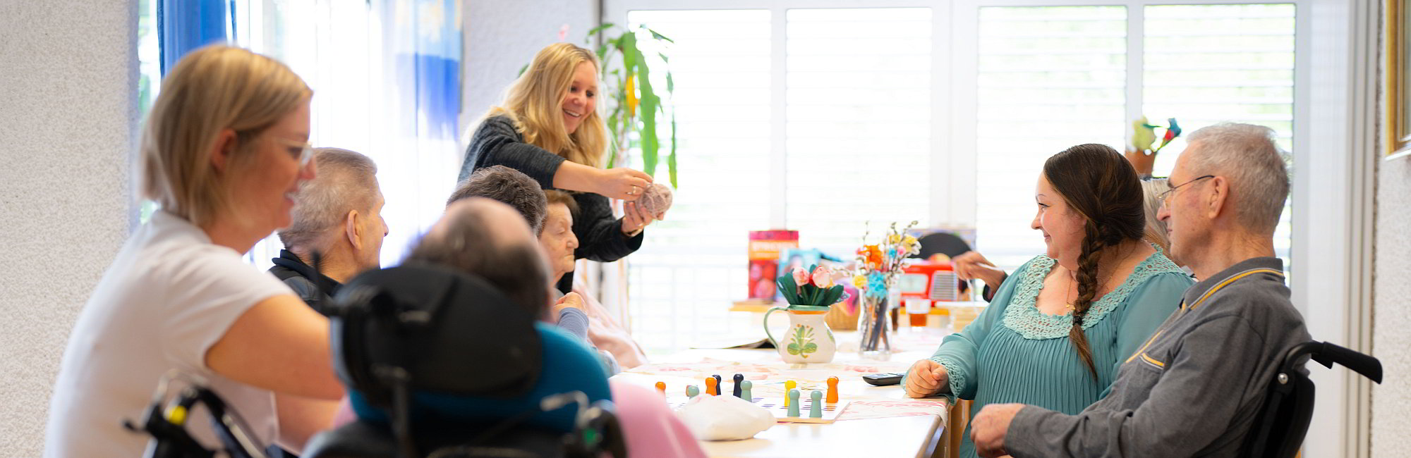 - Bewohnerinnen und Bewohner verschiedenen Alters betreuen wir in kleinen Gruppen in unserer Förderstätte und fördern sie entsprechend.
